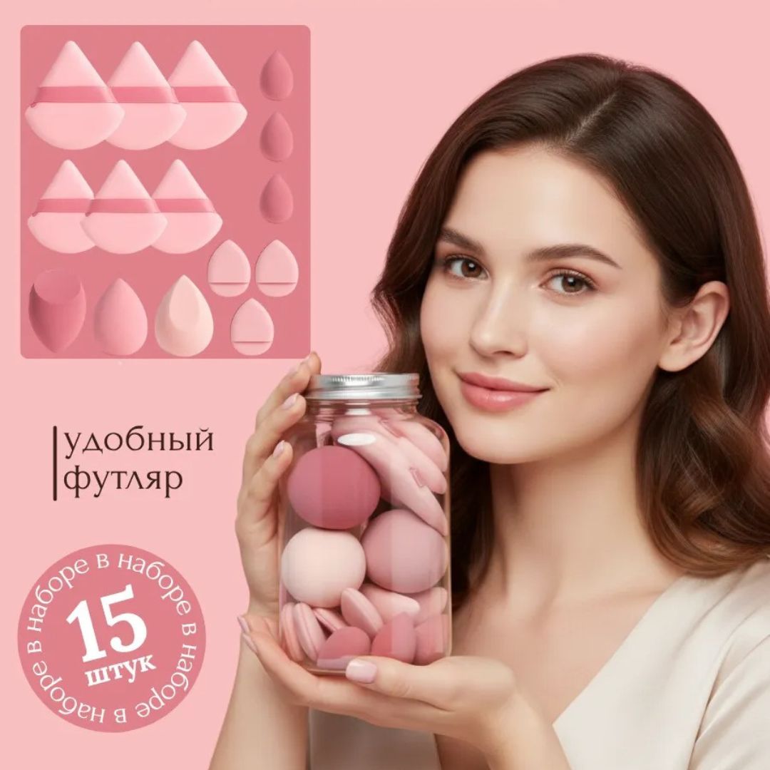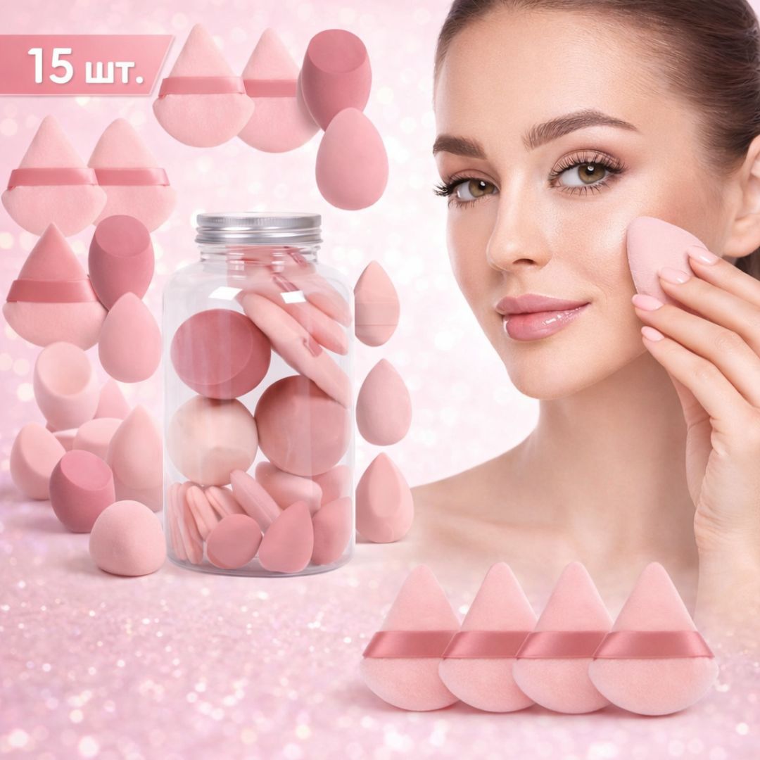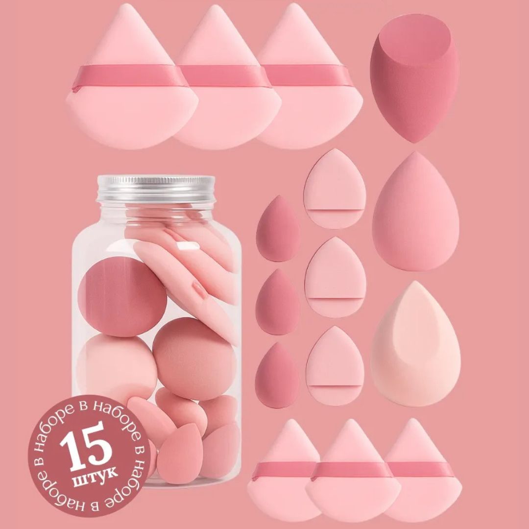 Идеальный помощник в мире косметики - это универсальный спонж для нанесения макияжа. Этот гипоаллергенный спонж, входящий в профессиональный набор из 15 штук, отлично подойдет для нанесения сухих и жидких текстур, гарантируя равномерную растушевку косметических средств. Наши спонжи для макияжа позволят наносить любой тональный крем, консилер для лица и консилер для глаз, кушон для лица и корейскую косметику. База, основа под макияж, праймер, детский крем распределяется тонким слоем. Для нанесения жидких текстур необходимо предварительно его смочить водой. Профессиональная губка спонж яйцо создаст равномерную растушевку жидких текстур на лице и подарит безупречный контуринг. Также подойдут для сухих средств (пудра, румяна, тени). С разными срезами и размерами этот beauty blender подарит Вам возможность выбирать оптимальную форму для нанесения макияжа. Кремовые и жидкие текстуры легко растушуются на коже благодаря бьютиблендеру. Экономит пудру и уходовую косметику, делая его многоразовым средством для создания безупречного образа каждый день. Он не только экономит продукт, но и обеспечивает идеальное покрытие.