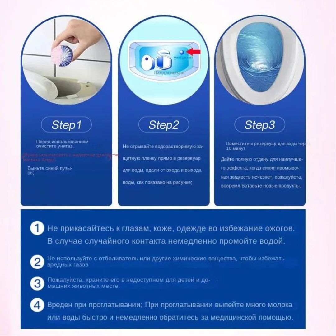 3. СДЕЛАНО ИЗ МАТЕРИАЛОВ ВЫСОКОГО КАЧЕСТВА: Наше средство для чистки унитазов изготовлено из материалов высшего качества, которые превосходят отраслевые стандарты. Наша формула не имеет запаха и не вызывает раздражения. Наша концентрированная технология медленного высвобождения обеспечивает длительную эффективность каждой чистки, поэтому вы можете быть спокойны.