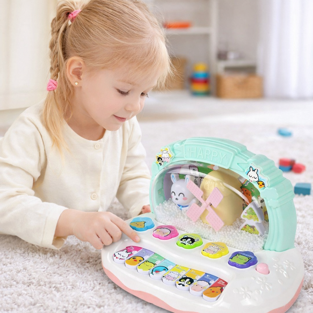 Портативное детское музыкальное пианино с подсветкой - идеальная игрушка для развития малышей! Это интерактивное пианино специально разработано для детей, чтобы помочь им развивать воображение, творческие способности, моторику и память. С яркой подсветкой и несколькими режимами игры, включая исполнение фортепиано, режим песен и игру с хомяком, ваш ребенок будет в восторге от музыкальных звуков и веселых игр. Эта музыкальная игрушка безопасна в использовании, не имеет запаха, прочная и её нелегко сломать. Пианино идеально подходит для раннего образования, стимулируя интерес к музыке и укрепляя связь между вами и вашим ребенком в процессе игры. Подарите вашему малышу хорошее настроение каждый день с этим замечательным детским музыкальным пианино!