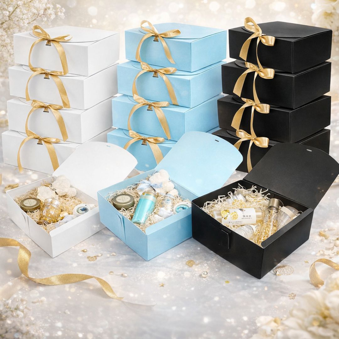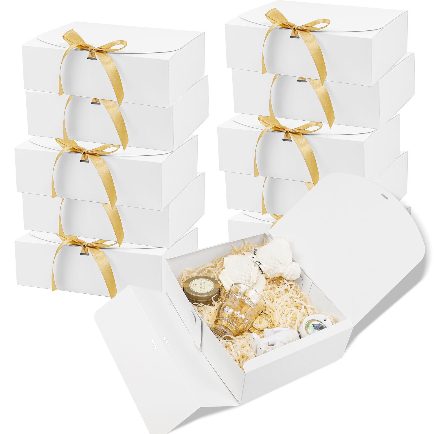 Элегантный и универсальный набор подарочных коробок с золотыми лентами идеально подходит для любого торжества. Эти прочные коробки из высококачественного картона обеспечивают безопасность содержимого и имеют роскошный внешний вид.