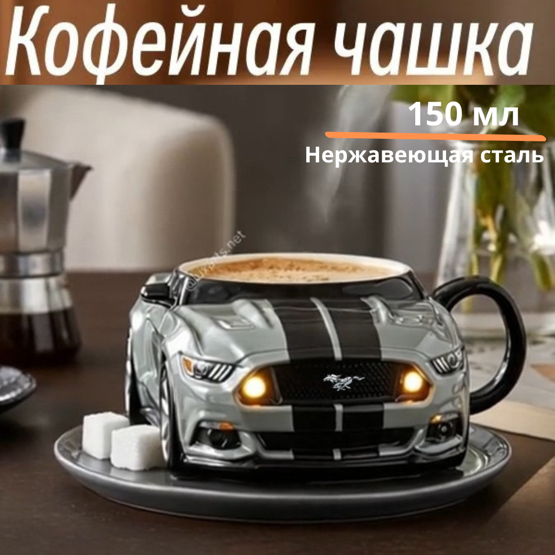 Эта эффектная кружка для кофе выполнена в стиле легендарного американского мустанга. Её уникальная особенность — практичный держатель в виде миниатюрного автомобиля, который служит одновременно и стильным акцентом, и удобной подставкой для ложки.
