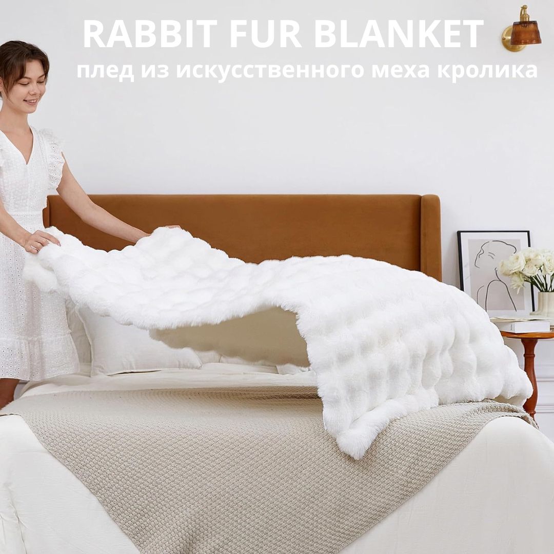 Представляем вам роскошный плед из искусственного меха, созданный с акцентом на высочайшее качество. Изготовленный из 100% полиэстера микрофибры, он имитирует мягкость натурального кроличьего меха, даря ощущение уюта и невероятной нежности.