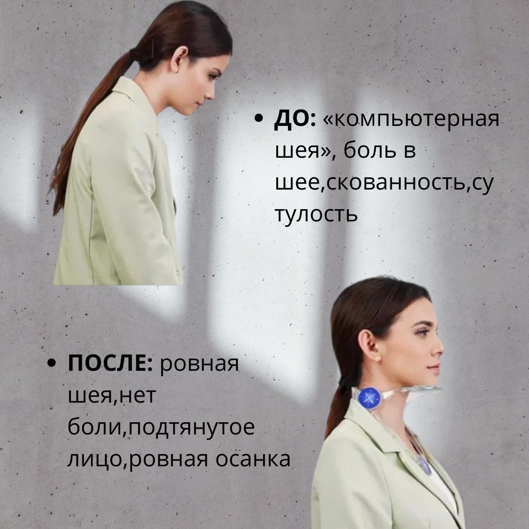 Ежедневное использование шейного фиксатора для плеч и расслабителя шеи — отличный способ уменьшить дискомфорт в шее и вернуть шею в правильное положение, используя его силу натяжения. Используйте его по 15–30 минут 2–3 раза в день, чтобы поддерживать правильное положение шейного отдела позвоночника. Использование шейного фиксатора для коррекции осанки поначалу может быть неудобным, но постоянное использование обязательно облегчит боль в шее.