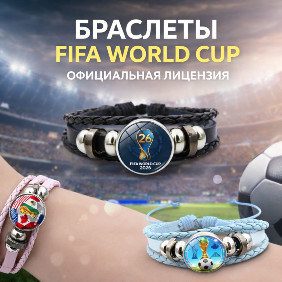 Официальный браслет с эмблемой Чемпионата мира по футболу 2026 года (США-Канада-Мексика): выразите свою поддержку с помощью этого браслета с застежкой, выполненного из аутентичной многослойной плетеной искусственной кожи, что делает его практичным аксессуаром для болельщиков как во время матчей, так и для повседневного использования.