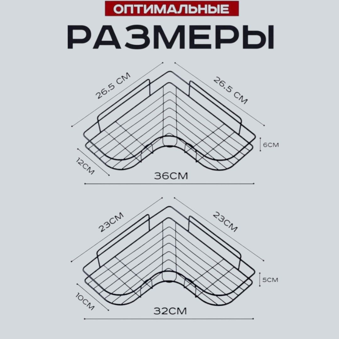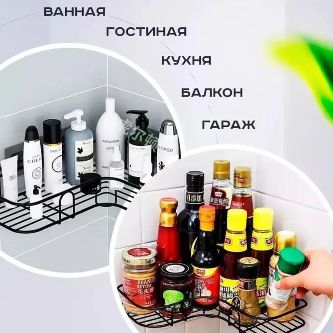 Угловая Полка Для Ванной Комнаты, Туалета И Кухни Для Хранения Принадлежностей, Шампуней, Мыла, Крема. Самоклеящаяся На Липучках, Без Сверления. Открытая, Ярусная, Металлическая, Настенная. 2шт.