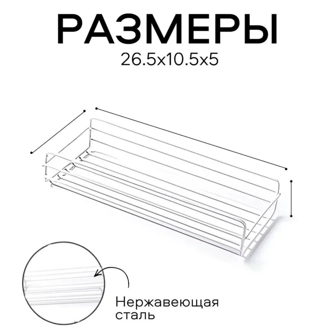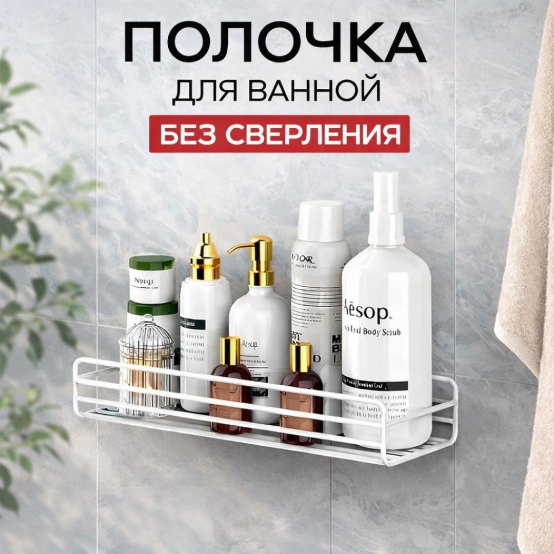 Многофункциональная и стильная полка, настенная самоклеящаяся для кухни и ванной: устанавливается без сверления, современный дизайн, оптимальный размер, есть крепление в комплекте.