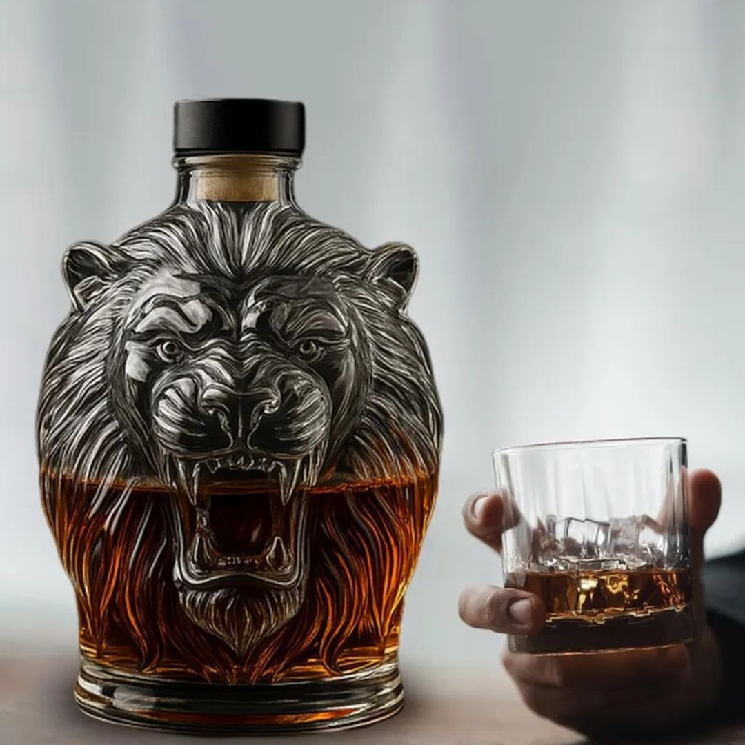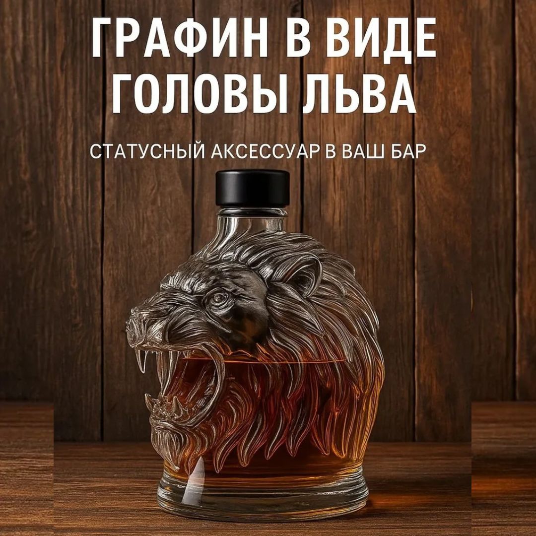 · Дизайн: Центральным элементом дизайна является величественная скульптура головы льва, выточенная с ювелирной точностью. Каждая грива, каждая черта морды передана с невероятной детализацией, создавая эффект объема и мощи. Прозрачность стекла играет на свету, оживляя образ царя зверей и придавая ему динамику.
