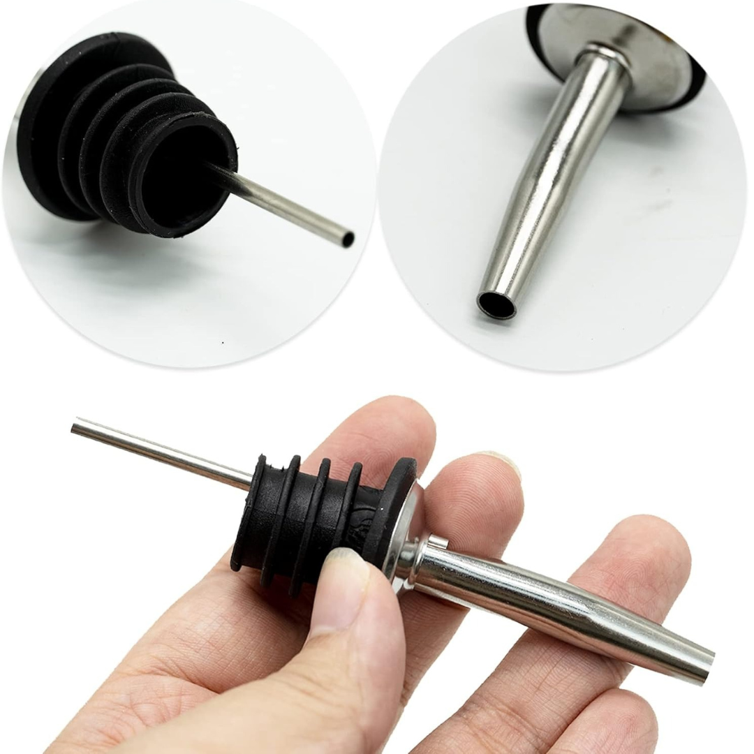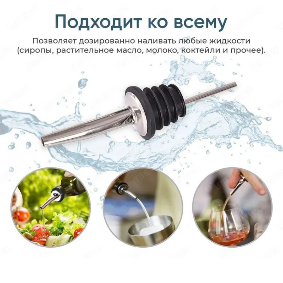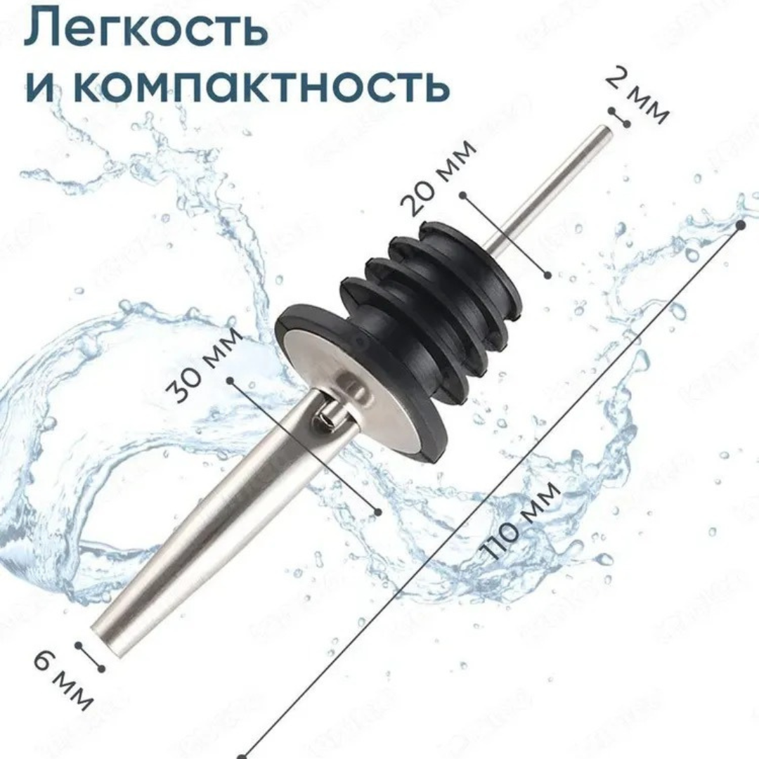 Пробка для бутылки изготовлена из прочной нержавеющей стали, которая обеспечивает высокую стойкость к механическому износу, не подвержена коррозии, а также не влияет на вкусовые свойства. Дозатор для сиропа имеет специальный резиновый уплотнитель, который обеспечивает герметичность. Также пробка для вина имеет специальное отверстие-воздухоотвод для непрерывной струи. Насадка дозатор для бутылки алкоголя имеет ширину основания, подходящую для всех стандартных стеклянных бутылок. Дозатор для напитков подходит для многих производителей вина, рома и виски.