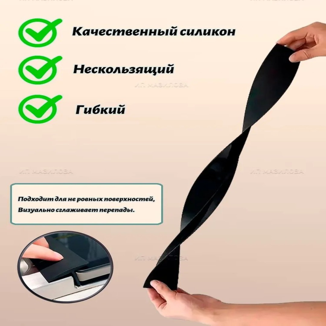 Защитная накладка на плиту – планка для столешницы, который предотвращает попадание жира, воды и других загрязнений на вашу кухню, поддерживая её в чистоте. Длина плинтуса составляет 63 см, а ширина – 5,6 см. Этот декоративный плинтус для столешницы также можно использовать для закрытия зазоров между кухонными столами, шкафами, стиральной машиной, посудомоечной машиной, раковиной и другими элементами. Идеальное решение для сохранения аккуратного внешнего вида вашей кухни. Внимание! Перед установкой опустите накладку в горячую воду на 20-30 секунд, чтобы материал стал мягче и лучше подошел для монтажа. Экран от брызг жира можно использовать как защитный плинтус на столешнице, предотвращая попадание жидкости и грязи в зазоры, что избавляет от необходимости часто отодвигать мебель. Эта накладка для плиты в зазор позволит вам готовить без беспокойства о загрязнениях и повреждениях. Силиконовые накладки, для столешницы на кухню планка устойчивы к высоким температурам и подходят для использования на газовых, электрических и индукционных плитах. Изготовленные из прочного и эластичного силикона, они легко устанавливаются, снимаются и долго служат. Накладка между плитой и столешницей моется как вручную, так и в посудомоечной машине. Инструкция по установке: Разместите накладку на столешнице в месте зазора. Мы не рекомендуем использовать клей или скотч для фиксации, чтобы можно было легко снять и очистить накладку. Силиконовый уплотнитель надежно держится на месте благодаря собственному весу, не скользит и плотно прилегает к поверхности огранечитель между газовой плитой и гарнитуром. При необходимости стыки и защитная лента для мебели можно легко укоротить ножницами. У нас есть два цветовых варианта: черный и белый, что позволит вам не только обеспечить защиту от загрязнений, но и подобрать подходящий дизайн для вашей кухни гибкий экран.