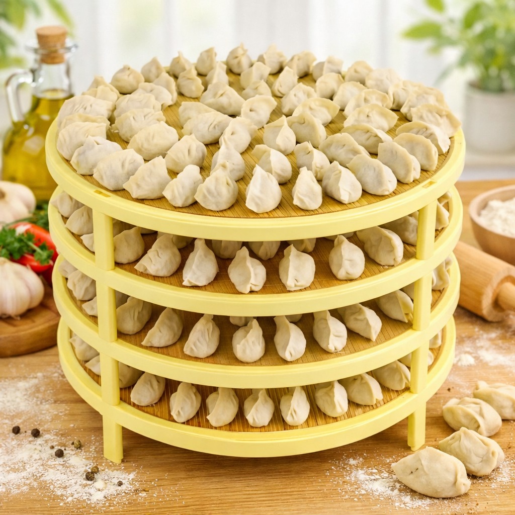 Круглый контейнер для заморозки пельменей, который облегчит ваши будни. 5 слоя. Можно хранить при температуре от -20 до -100 градусов. Расстояние между слоями составляет 6 см, поэтому он быстро замораживается. В основе бамбуковый сердечник, поэтому пельмени и вареники не слипаются. Слои разъемные, так что вы можете собирать их по своему усмотрению. Большой размер позволяет замораживать много пельменей одновременно. Он разъемный и имеет отверстие для подвешивания на каждом слое, поэтому занимает меньше места. Легко моется. Прочный и не ломается.