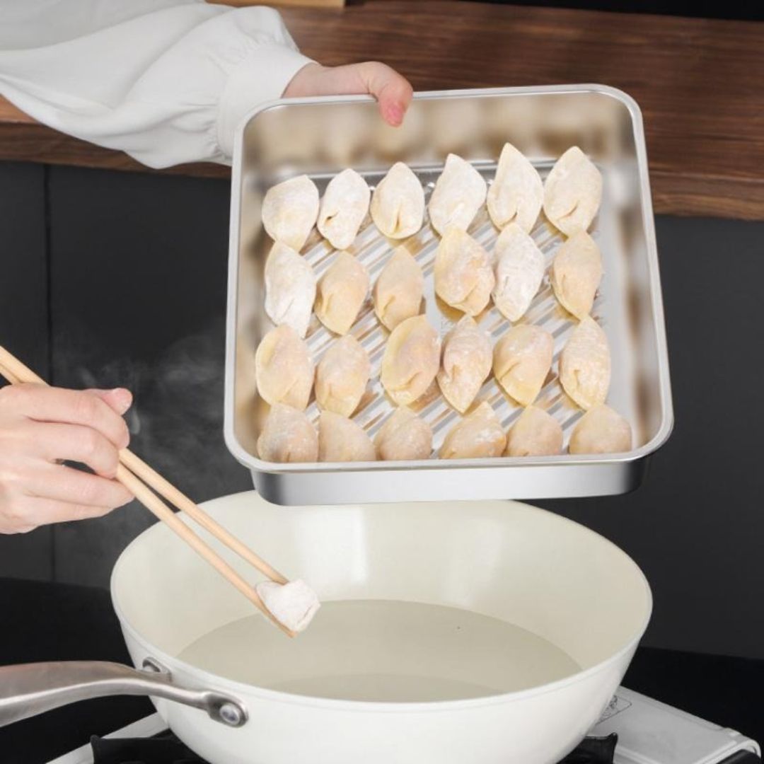 Этот контейнер из нержавеющей стали для хранения пельменей — идеальное решение для организации кухни. Его компактный дизайн гарантирует свежесть и вкус продуктов, а также он отлично подходит для хранения фруктов, овощей и других продуктов и подхлдит для выпечки. Прочный и пригодный для вторичной переработки материал делает его экологически безопасным. Этот контейнер идеально подходит для кухонь, где важны порядок и практичность. Одним словом, этот инновационный продукт делает жизнь на кухне проще и приятнее!