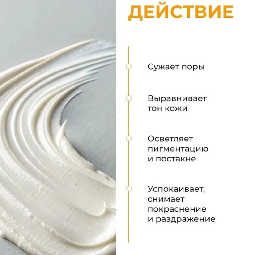 5% ниацинамида (витамин B3) оказывает многофункциональное действие: регулирует себовыделение, устраняя жирный блеск, осветляет и препятствует появлению пигментации, а также стимулирует выработку коллагена, повышая упругость и эластичность.