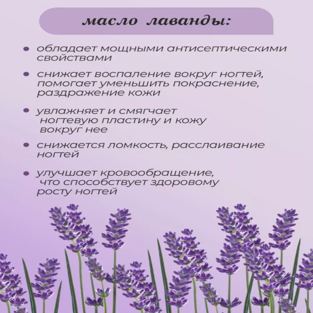 Масло для кутикулы с чайным деревом и лавандой - это ухаживающий продукт для ногтей и кожи вокруг них, обогащенный натуральными маслами чайного дерева и лаванды. Это масло помогает увлажнить и смягчить кожу, предотвращает сухость и ороговение кутикулы, а также обладает противовоспалительными свойствами.