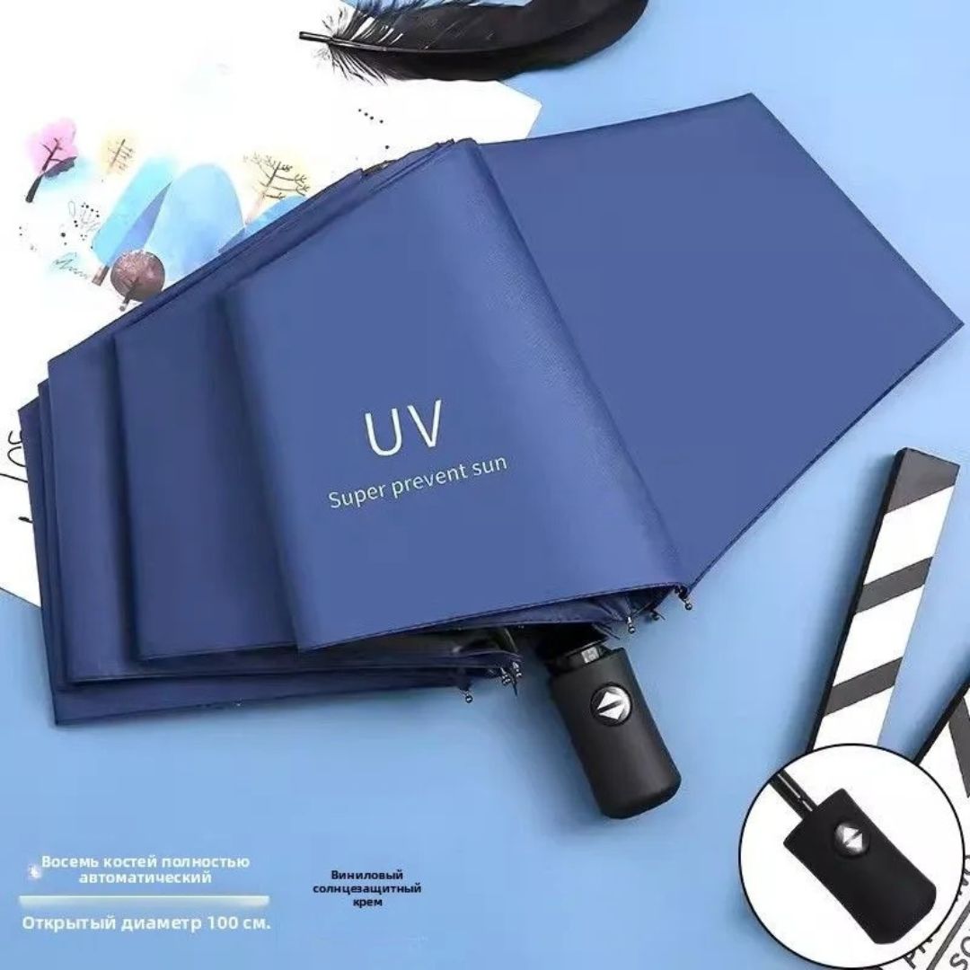 Автоскладной зонт 3-в-1: УФ-защита + ветроустойчивость + двойное использование (солнце/дождь). Супер-умный дизайн — нажми кнопку и забудь о руках. Открывается и закрывается автоматически. Плотный каркас из стекловолокна и стали выдерживает ветер до 8 баллов. Компактный, но большой в раскрытом виде .