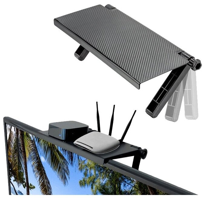 Достаточно зафиксировать ножки под необходимым углом и смонтировать подставку на верхнюю часть телевизора или монитора.