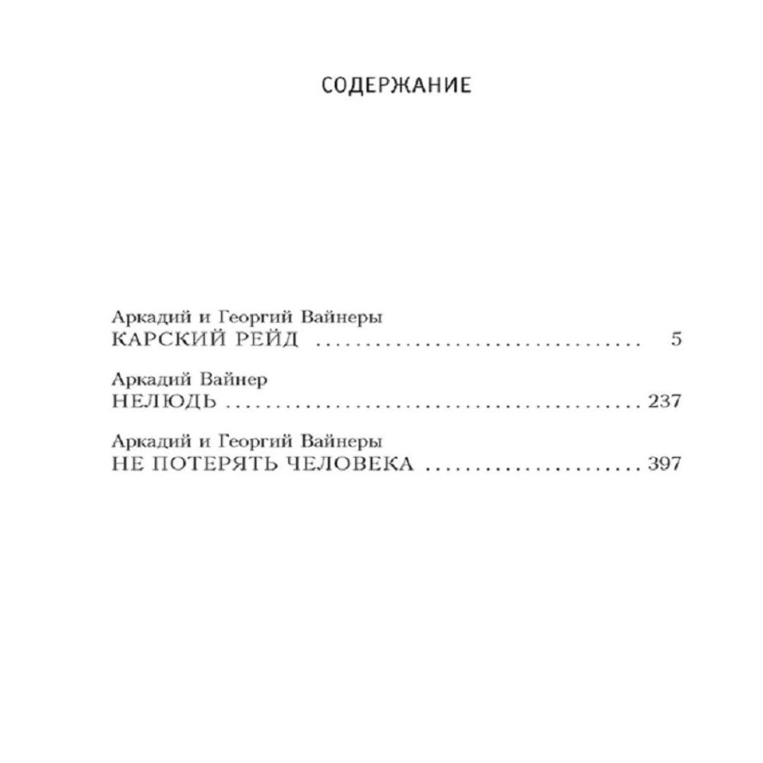 Братья Вайнеры — признанные мастера детектива, но с успехом работали и в других жанрах. Например, события повести «Карский рейд» разворачиваются в двадцатые годы XX века. Россия измучена потрясениями революции и кровопролитной Гражданской войной. Высока внешняя угроза. В европейской части страны голод, а в Сибири хлеб есть, и с избытком, но доставить его можно только Северным морским путем, и задача эта кажется почти невыполнимой… Еще один образец нетрадиционного для Вайнеров творчества — художественно-документальные очерки, объединенные в книгу «Не потерять человека». В них авторы рассказывают о реальных судьбах подростков, преступивших закон. Повесть Аркадия Вайнера «Нелюдь» легла в основу сценария одноименного фильма 1990 года. Главные роли в картине исполнили такие замечательные актеры, как Людмила Гурченко, Борис Невзоров, Сергей Никоненко.